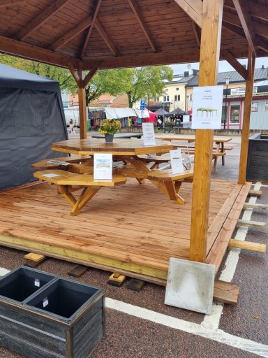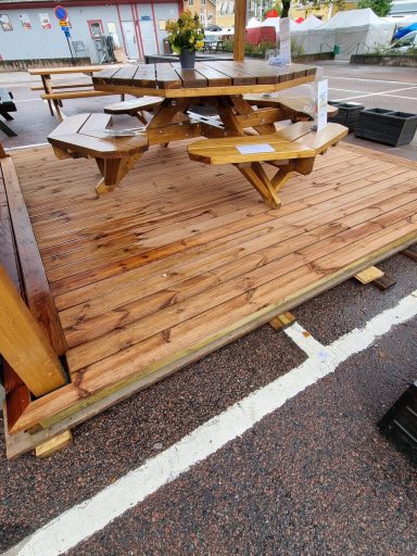 Komplettera din paviljong med ett anpassat golv i tryckimpregnerat trä som ger en jämn och stabil grund.